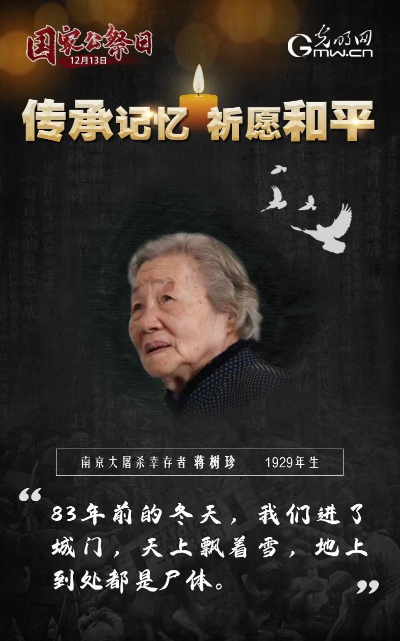 2020年12月13日是南京大屠杀惨案发生83周年,也是第7个南京大屠杀死难者国家公祭日。南京大屠杀幸存者们忆往昔,血与泪的历史仍历历在目;看今朝,希望天下和平、没有战争。回忆,是为了更好地前行。铭记历史,珍爱和平!