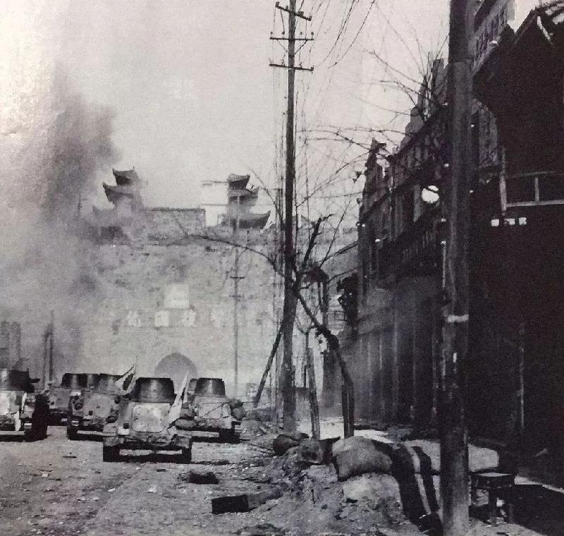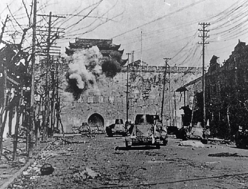 (日军攻破南京城,日军的装甲部队从中华门进入南京城。)