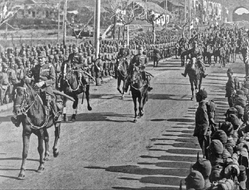 (日军攻陷南京城后,华中日军最高指挥官松井石根率队在南京城举行入城仪式。)