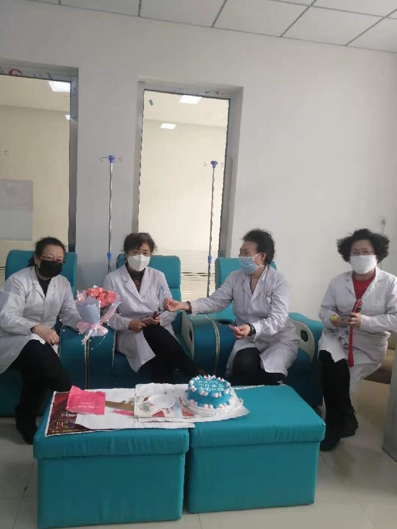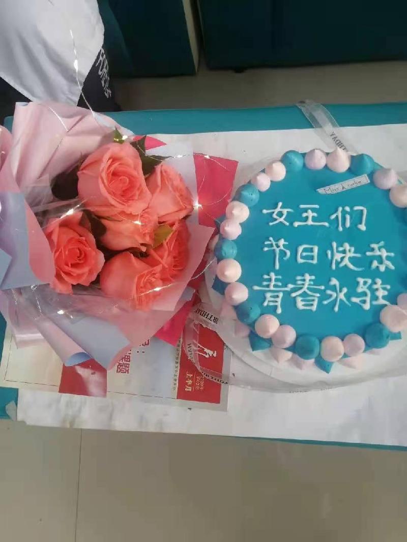 这是药局刘向华的女儿为我们抗疫一线医务人员敬献的三八节生日蛋糕,大家正在工作之余,享受这份情深义重的节日蛋糕。