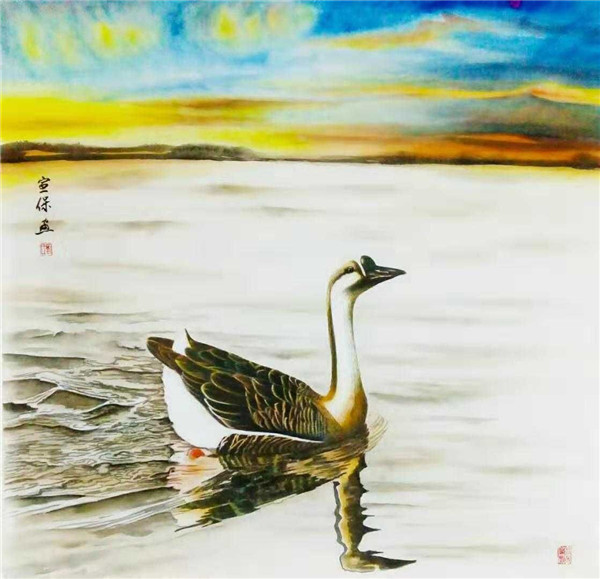 传统的,就是珍贵的,师古而不泥古是刘宣保作画的重要原则。他遍临古人的优秀作品至今从未间断,且刻苦认真、力求通古。鄙弃学古只为阿逢世好、哗众取宠的倾向,同时反对袭前人不能自拔,亦步亦趋只在古人的成规里打转,不能脱平庸匠气之俗。从刘宣保的画作里可以看到传统笔墨的影子,同时在师古的基础上推陈出新,创造出工笔与写意相融、中西结合的新技法。其显著特色是把民间题材之俗与传统笔墨之雅有机地揉合在一起,加之工写中西结合技法,因此让观者能收到雅俗共赏的效果。