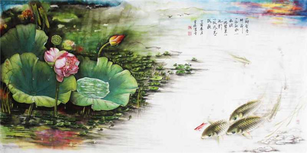 2、赏心悦目:愉悦画派的作品,尤其是荷花和鱼堪称一枝独秀,其笔下的荷花飘逸淡雅、超凡脱俗,给人一种含蓄的内在的韵律美。其鱼形神兼备、顾盼生情、栩栩如生、活灵活现。整体造型严谨、运笔老道、设色明快,是心灵的情感抒发。每幅作品都具有不可模仿的独创性,达到天人合一、赏心悦目的效果,让观者与作品产生强烈共鸣和心灵的震撼。