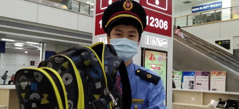 列车到达广州站下车时,我怕老乡久等我,我就匆忙地下了车。当走出站台才察觉到,随身带的一个背包落在车厢上了。情急之下,我抱着试试看的心理,拨打了铁路专线12306,说明了情况,请求帮我寻找遗物,接线员爽快地应允,并留下我的联系电话号码。