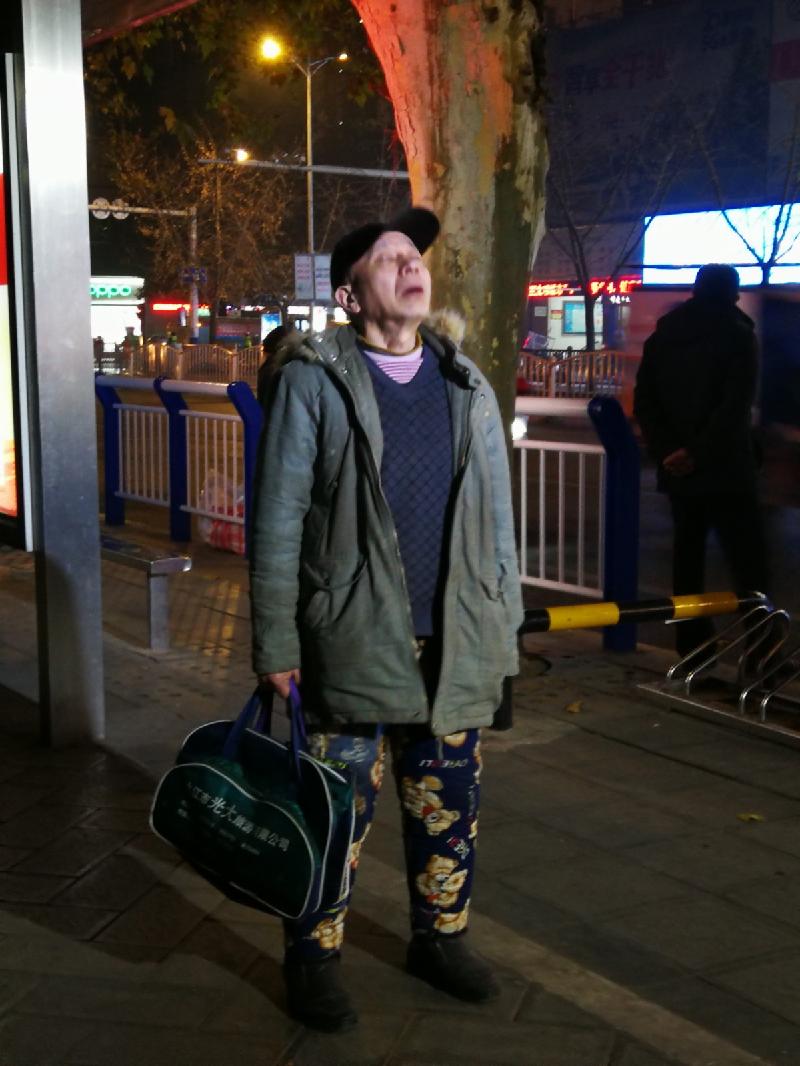 无名氏,男,站着时而低头时而抬头,嘴里嘀咕嘀咕,估计精神有问题,流浪在九江市,现天寒地冻,帮老人回家。