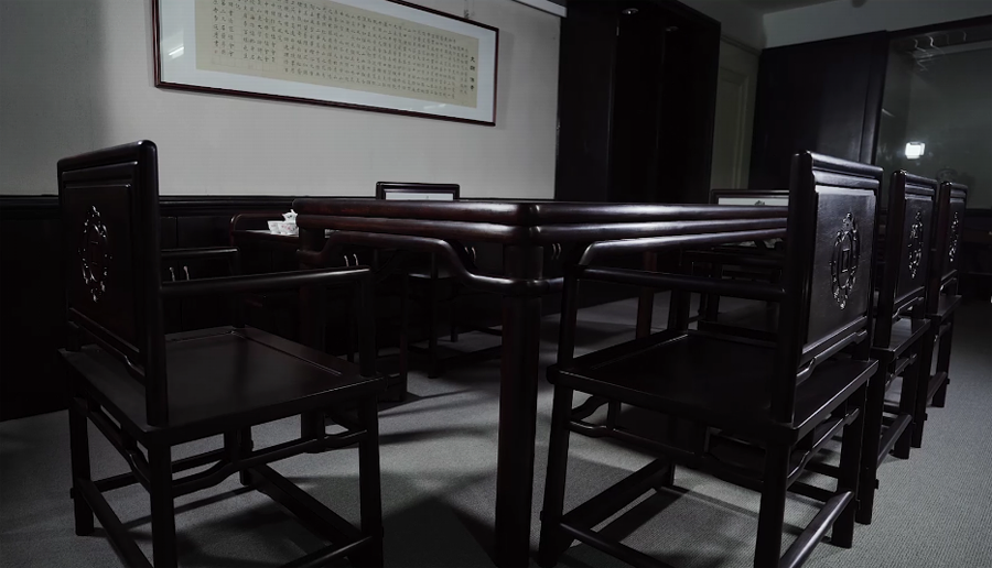 精挑细选的原料与工艺真传,让家具的自然韵味与岁月痕迹的天然融合成为现实,家具经过对红木原材料进行探钉、起钉、开料、烘干、平衡、毛料、精料、卯榫、成型、打磨、抛光、油漆等多道繁复工序。张松茂大师粉彩瓷画赋予家具生命力,以雍容华贵的牡丹为主体,搭配山水、荷花、鸳鸯、玉兰、春花等元素,瓷画与家具构成了一幅“富贵祥瑞·龙腾紫气”的和谐画面,庄重端美,艳丽舒适。