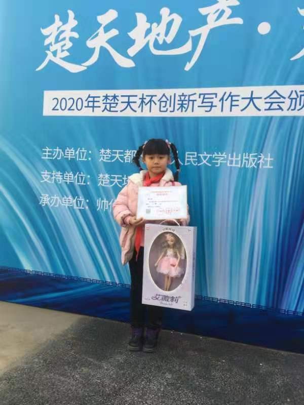 张心怡,武汉市光谷第十六小学302班学生,孙老师亲子读写训练营学员,荣获2020楚天杯作文大会三等奖。