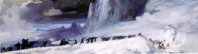 队伍接近山顶时,空气越来越稀薄,连呼吸都很困难。很多同志因为疲惫和饥饿坐在了雪地上,这一坐,便成了冰雪的雕像。