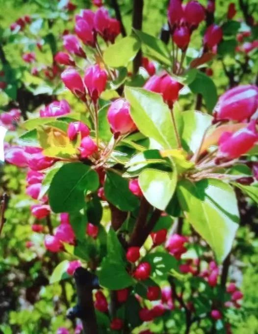 古城五月百花放。山坡上,河谷旁。花红柳绿,蜂蝶恋花忙。朋友相约去游园,相携手,赏海棠。