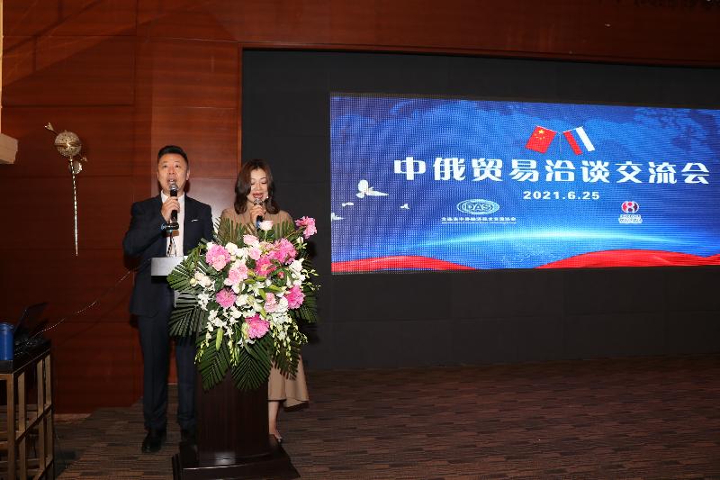 大连市商务局刘国志副局长在中俄贸易洽谈交流会上致辞。强调指出大连市与俄罗斯一直保持着千丝万缕的联系,历史和现实将中俄企业家们紧紧的联系在了一起。希望中俄双方企业家借本次贸易洽谈会的契机,通过大连市中外经济技术交流协会与俄方共建的“信息交流平台”,加强沟通、增进了解,推动大连与俄罗斯商品在线上线下推广、共构连锁消费。在市场调研、会展合作、贸易对接等领域取得更多收获,实现互利共赢。