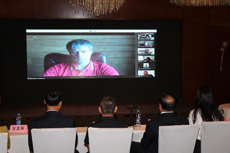 中方翻译在用俄语在线介绍中方领导嘉宾 ▲