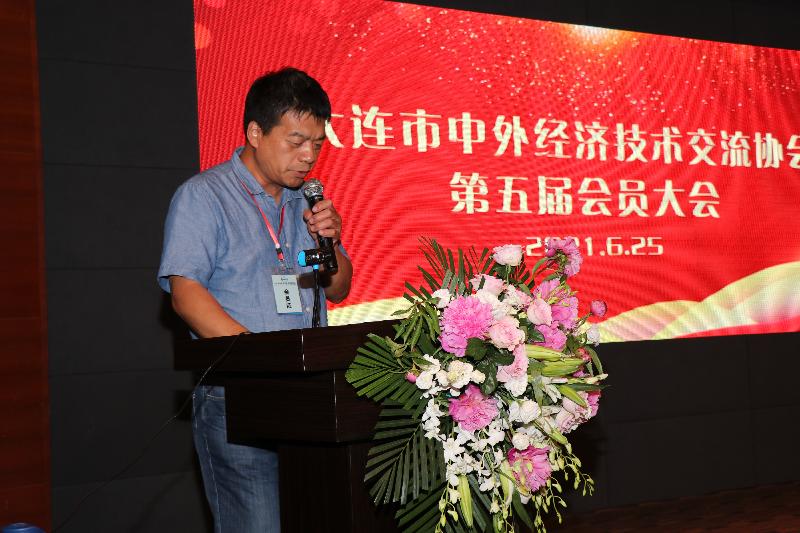 ▲主持人宣布大连市中外技术交流协会第五界会员大会正式开始
