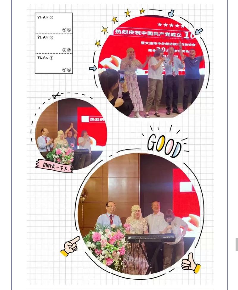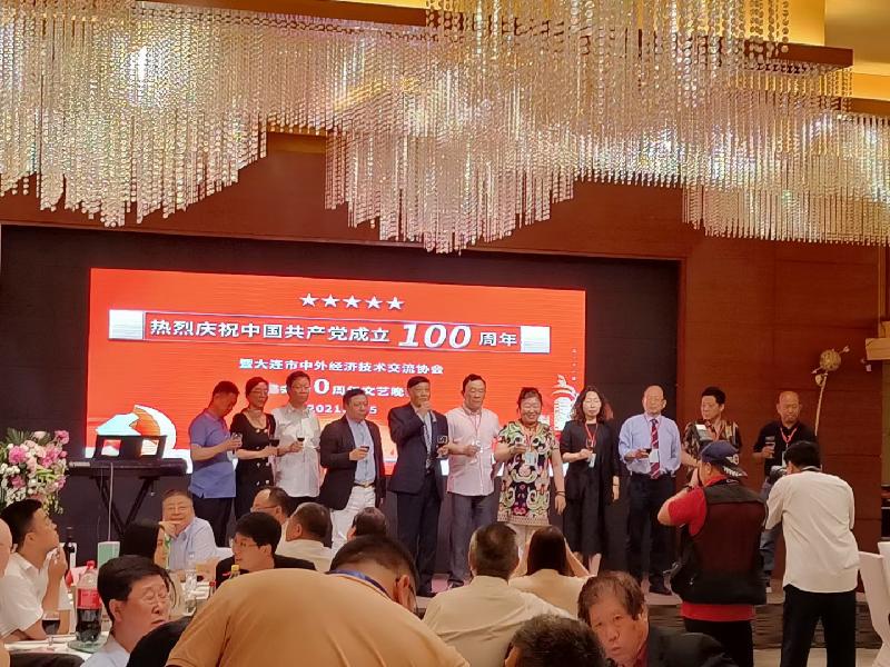 二、大连市中外经济技术交流协会第五届大会 三 、庆祝建党100周年大连市中外经济技术交流协会20周年文艺晚会。