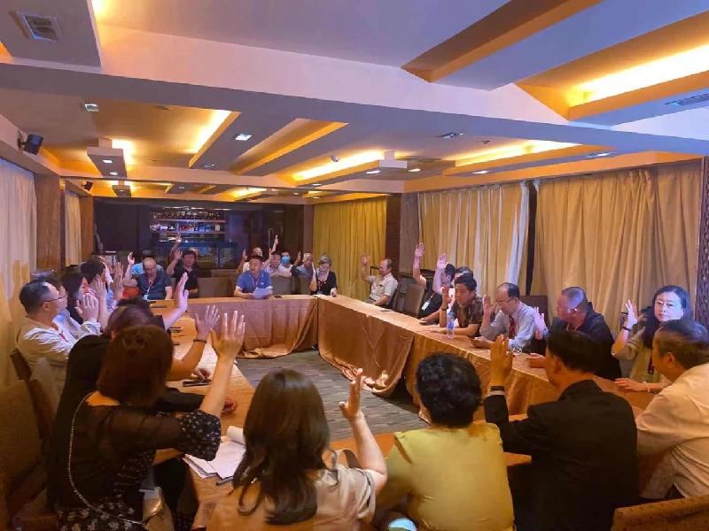 中外经济技术交流协会与会八十余名会员代表上台投票现场 ▲
