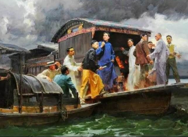 高举一面血红的、用镰刀和铁锤铸造的旗帜
