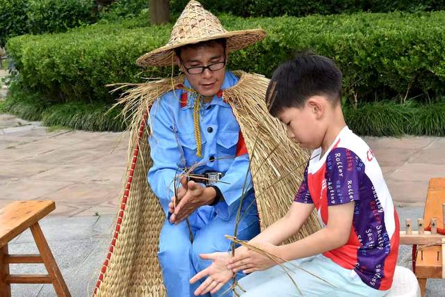 “红军”教娃打草鞋。