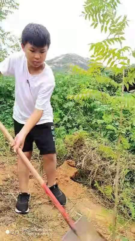 老师、家长,学生们顶着酷热,唱着高歌,在华胥山下巜圣城母亲林》栽下了一棵又一棵于娟博士倡导的黄连木幼树。