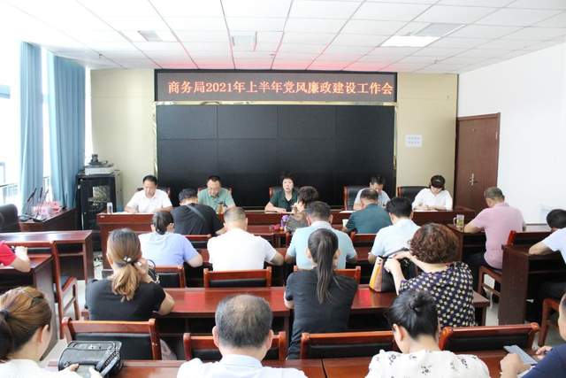 7月29日上午,汝南县商务局组织召开2021年上半年党风廉政建设工作会,县派驻纪检组组长胡春建,局党组班子成员、机关和二级机构全体工作人员参加会议。