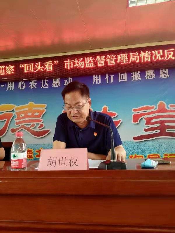 县纪委副书记、县监委副主任、县委巡察工作领导小组成员倪红卫出席反馈会,传达了县委书记专题会议精神,提出了整改工作要求,县委第一巡察组组长胡世权代表巡察组向县市场监督管理局党组班子进行了情况反馈,县市场监管局党组书记、局长赵胜利做了表态发言。