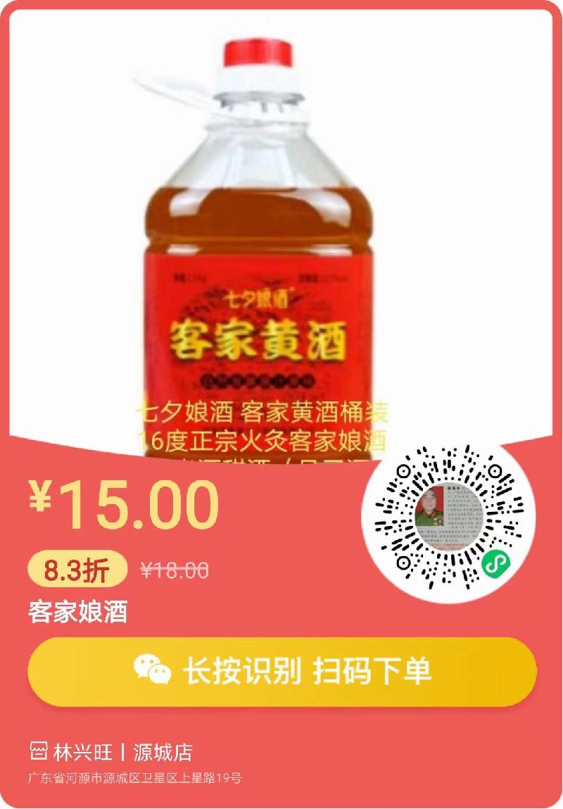 七夕娘酒 客家黄酒桶装16度正宗火灸客家娘酒河源特产白糯米酒甜酒(月子酒原酿黄酒 )1斤装到店提货,5斤桶装95元全国各地包邮,10斤桶装188元全国各地包邮。 发货地址 广东省河源市源城区 电话☎️ 18125292737微信同号