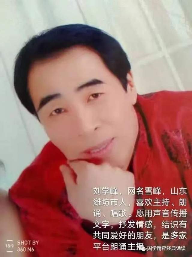 刘雪峰,山东潍坊市人,喜欢主持、朗诵、唱歌。愿用声音传播文字,抒发情感,结识有共同爱好的朋友,是多家平台朗诵主播。