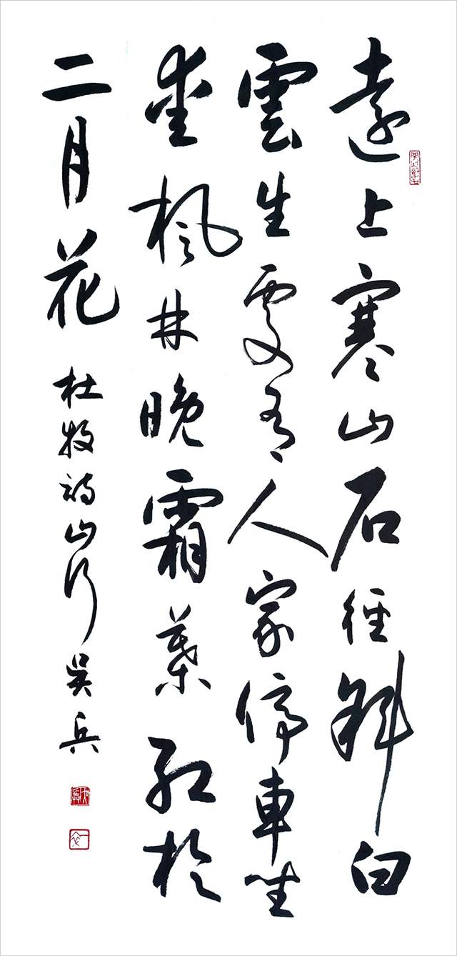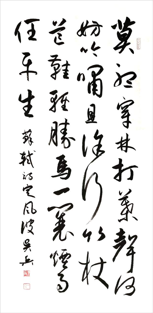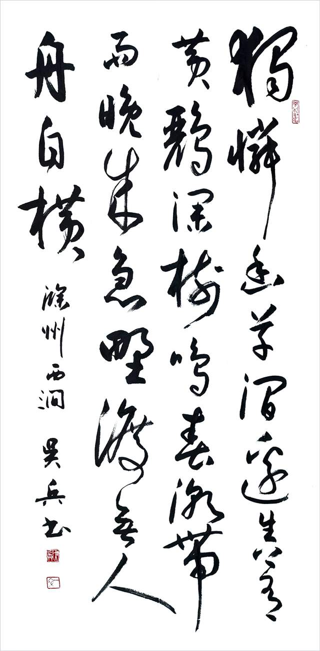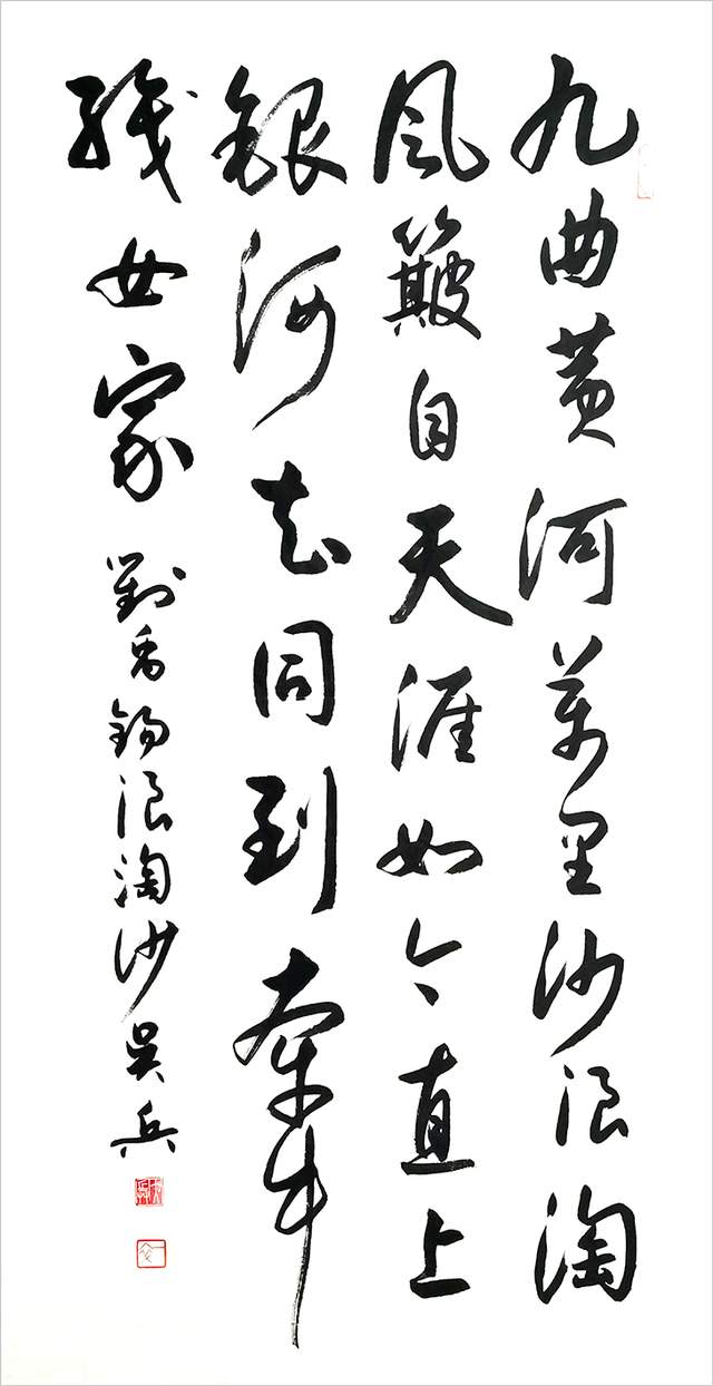 吴兵 原总参谋部某部副部长,少将军衔。师从著名书法家冯大彪先生,其书法作品和书法理论研究文章多次在人民日报、人民美术家等报刋发表,多次参加全军和全国书法展,作品被国家级博物馆收藏。