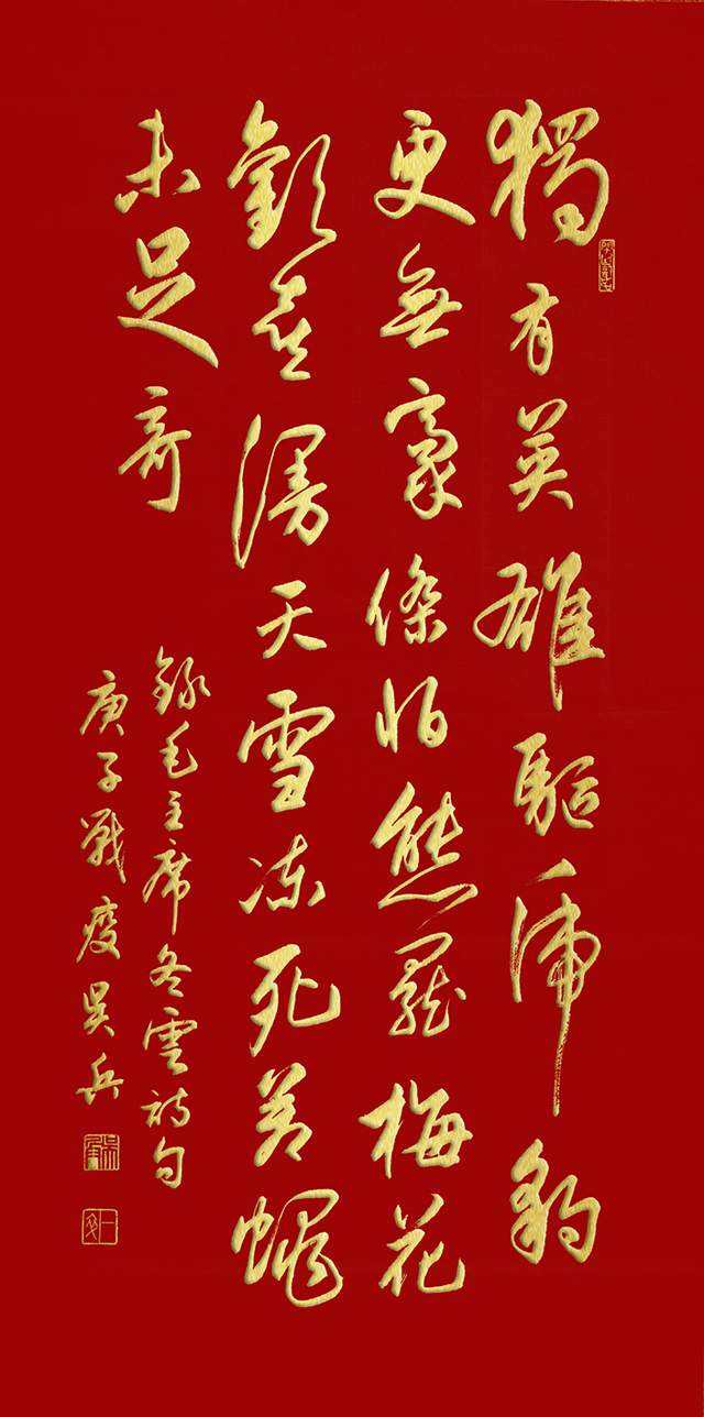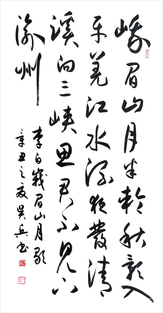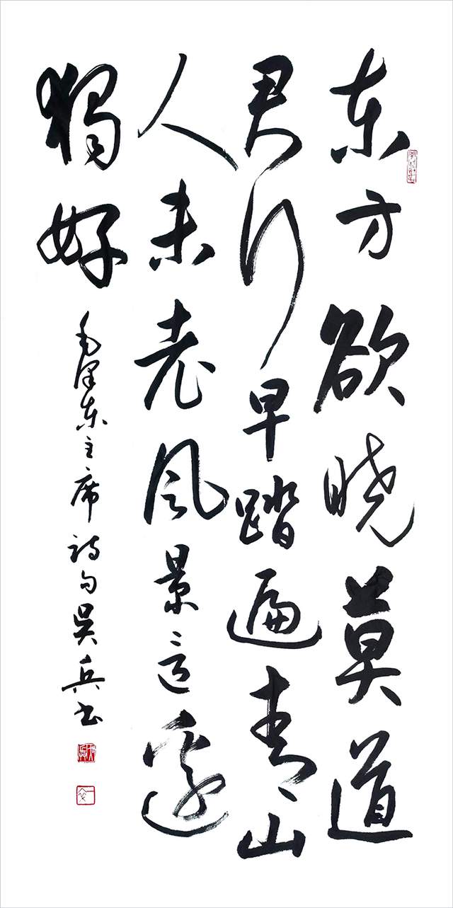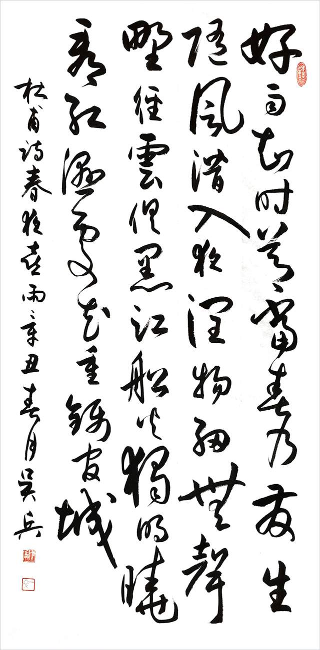 吴兵 原总参谋部某部副部长,少将军衔。师从著名书法家冯大彪先生,其书法作品和书法理论研究文章多次在人民日报、人民美术家等报刋发表,多次参加全军和全国书法展,作品被国家级博物馆收藏。