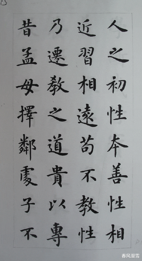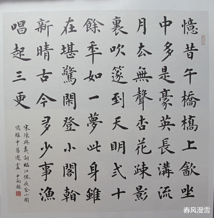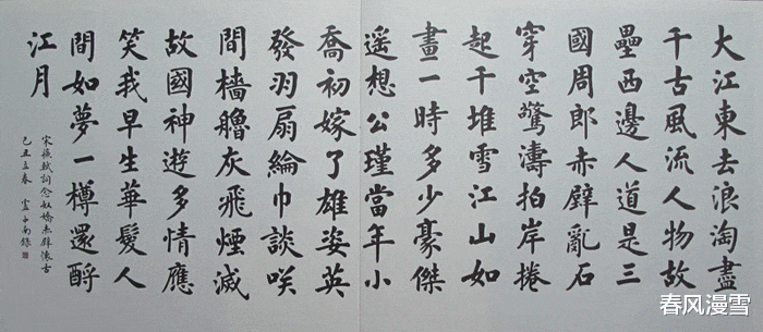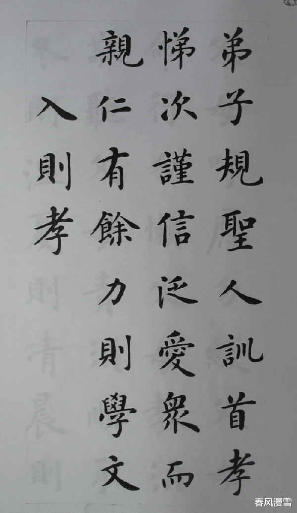 从卢中南的楷书作品上看,他的楷书是脱胎于欧楷,但是却将欧楷进行了一番新的改造,这种改造,虽然不是彻头彻尾的,但是却也将个人的见解和认识,融入了他的楷书之中,写出了一种崭新的气象,这种气象主打格调就是清新别致,而且还透着一股强烈的细腻之风,个性更加突出,而且笔墨很是浓重,这一点和他以往的书法,也有着不同点,可见,卢中南老师的楷书风格也是呈现出多变性的,虽然这样,但是,欧楷的底蕴还是非常浓烈的,这一点是可以感受到的。