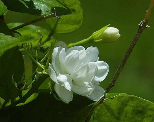 我喜欢茉莉花,不只是喜欢它那种叫人闻之忘忧的香气,还喜欢它的那一份从容与淡雅。素的色,不妖不娆,像是自然地流露出来一种与世不争不抢的风骨。花型也不大,并不起眼,叶子看起来也极普通,毫无特别之处。一身素淡,却极端庄典雅,像极了一位饱读诗书的知性女子,温婉柔丽。置于阳台之上,它的枝杈就一直向着阳光透进来的地方,向外延伸着,像是一直指向远方,我寄予了它执着又并不孤傲的性格,然后,就这样喜欢着它。