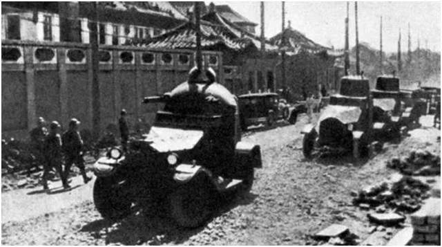 日军侵占沈阳城后,耀武扬威地站在城头,悬挂起日本国旗