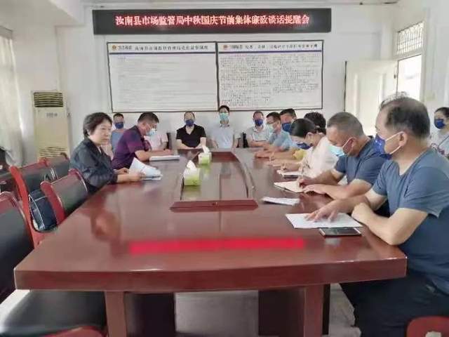 9月18日上午,汝南县市场监督管理局组织召开中秋、国庆节前集体廉政谈话提醒会,局党组全体成员、县纪委监委派驻第十三纪检监察组组长、局属单位负责人以及局机关全体干部参加会议。