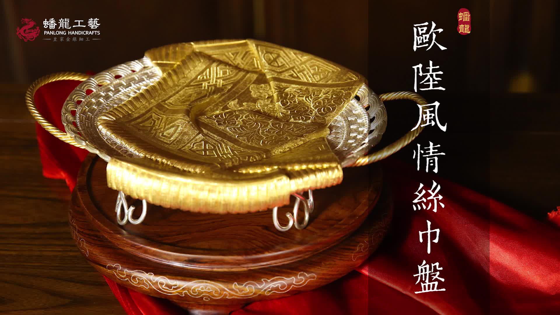 金银细工技艺可上溯到商周时代,至今已有近四千年的历史,在明清两代被尊为宫廷艺术,是我国非物质文化遗产中的艺术瑰宝。尤是其中的丝錾工艺讲究细若毫发,分厘必较,必须是高级工艺师一气呵成,不可断笔,不可迟滞,方可疏密一致,褶皱自然,纹理生动,全程手工操作,技术难度大,稳定性要求高,非数年之功力,非数年之积累不可动刀。《新唐书·百官志》所记包括培养金银器工匠在内的“钿镂之工”,要学习四年后通过严格考核方能成为正式工匠,当今技师亦以如斯,不敢逾矩。此盘之成器,方寸之间,气象万千,点滴之处,精美绝伦,可供世代流传,丰亨子孙,无愧于闪耀皇家气质和欧陆风情的钟爱之珍、尊崇之器!