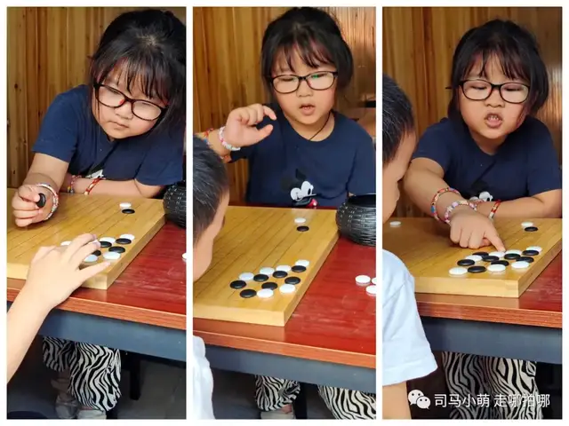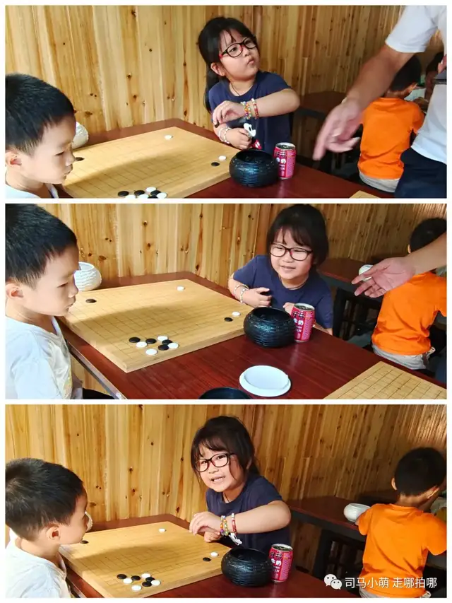 沿街一走,看到小朋友们在学下棋。这个小胖丫头表情丰富极了,特别可爱。