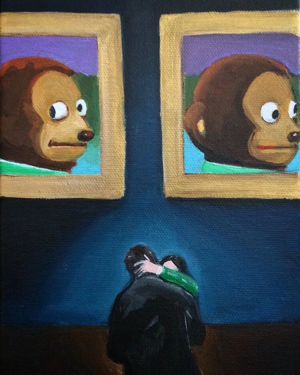英国艺术家 Mars Black 的作品大多是以传统技法为基础的绘画,但题材却不传统。网络图片、社交表情、恶趣味......在颜料的“滤镜”下,更加的荒诞。