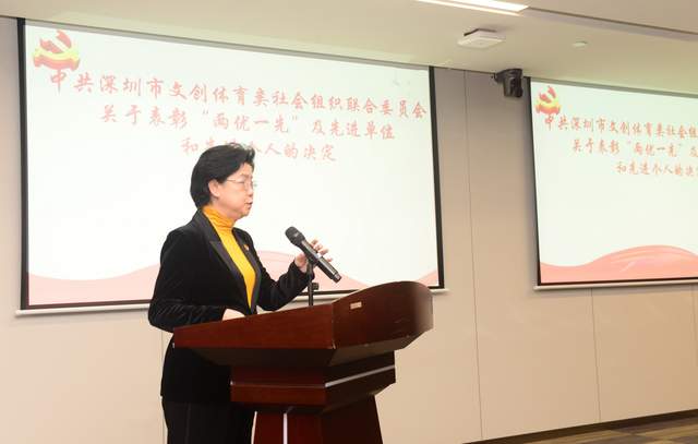 这次表彰的先进集体和先进个人,是中共深圳市文创体育类社会组织联合党委系统中的先进代表。他们信念坚定、积极作为、创新实干、甘于奉献,生动彰显了新时代共产党人和深圳经济特区建设者的时代品格和精神风貌。各党组织、全体党员、党务工作者和社会组织负责人要以受表彰的先进集体和先进个人为榜样,牢记全心全意为人民服务宗旨,争当表率、争做示范、走在前列,以更加坚强的党性、更加务实的作风,为党建工作和社会组织高质量发展贡献力量。希望受表彰的先进单位和先进个人要珍惜荣誉、谦虚谨慎、戒骄戒躁、奋发进取,做不忘初心、牢记使命的表率,做锐意进取、扎实工作的表率,为深圳市文化创意体育事业发展做出新的贡献,为深圳社会组织建设提供更多可以复制可供借鉴的深圳经验。