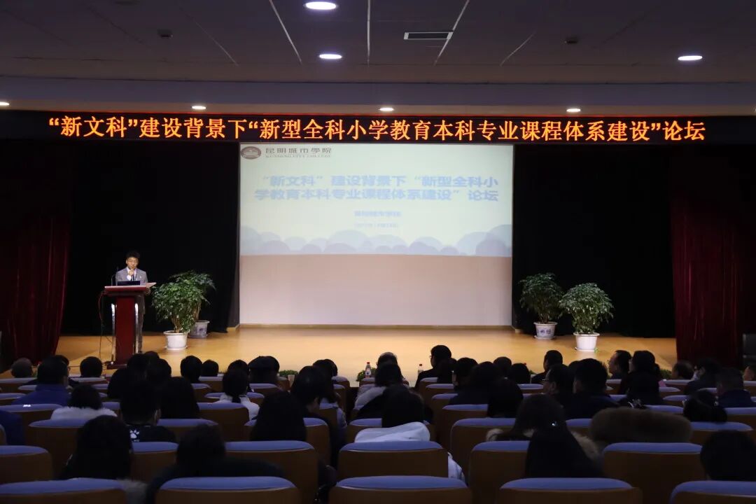 2021年12月25日,“新文科”建设背景下“新型全科小学教育本科专业课程体系建设”论坛在昆明城市学院举行,本次论坛由云南中华职业教育社、云南孔子学术研究会主办,昆明城市学院语言文学学院、上海志况人力资源有限公司承办,以“共商教育 展望未来”为主题,包括主题报告、研讨交流和师范技能(书法)教学成果展,聚焦小学教育本科专业课程体系建设,努力培养新时代小学卓越全科教师,来自业界的专家、学者齐聚一堂,共同交流,共话发展。 教育部全国第二届民族教育专家委员会委员、全国高等学校教育学类专业认证专家、云南省高等学校教育学类专业指导委员会主任委员、博士生导师李天凤教授、重庆师范大学初等教育学院院长林长春教授、曲靖师范学院周均东教授、曲靖市第二小学校长李青霖、云南孔子学术研究会会长谭中贵、云南中华职教社社会服务处处长苏勇、云南孔子学术研究会秘书长那剑杰、嵩明县嵩阳街道党工委书记杨云雁、中共嵩明县委统战部副部长李建平、嵩明县嵩阳街道主任张清、红河学院教师教育学院院长张平海教授、副院长李琼、昭通学院教育科学学院院长李宗远教授、副院长罗国忠、昆明学院教师教育学院副院长颜兰、滇西科技师范学院文学院副院长何唯、文山学院教师教育学院副院长董卫花以及省内16所高校的专业负责人及教师代表,12所中小学代表,协办单位云南长兴号茶叶有限公司董事长陶芳女士、纳百川教育投资有限公司董事长曹建东先生等24家校政、校企合作单位嘉宾。学校领导王昆来、宁凡、黄桂林及学院师生共2600余人通过线上线下相结合的方式参与本次论坛。论坛由语言文学学院党总支书记林颖主持。 校长王昆来教授在开幕式致辞中谈到,大学作为学术共同体,从其所处的地位和功能角度而言,是社会、知识的中心,是真理学术与道德的高地,举办系列论坛是学术的回归,是对大学本真的追求。他提到,应用型大学的发展需要科研、学术的支撑,师生应有对于真理信念的追求、对于学术的反思和批判精神。随后,他强调,我们要保证政治正确、理论正确、方法正确、路径正确,确保行走在正道上,追求自立立人而达于至善,自觉觉他而觉行圆满的境界。 嵩明县嵩阳街道党工委书记杨云雁代表产学研合作单位致辞,他讲到,昆明城市学院作为落地嵩明职教新城的17所高职院校之一,积极响应了嵩明县委县政府的号召,深入推进乡村振兴实践育人工作,与嵩阳街道秉持资源共享、互惠互利、讲求实效、合作共赢的原则,共同推进实施嵩明东村爱国主义教育基地建设、乡村振兴规划编制工作、电商人才培养和历史文化挖掘等多项富有成效的工作。昆明城市学院用实际行动诠释了为区域经济社会发展培养应用型专门人才的办学宗旨,为地方发展赋能。 嵩明县嵩阳街道办事处、云南长兴号茶叶有限公司、曲靖市沾益区水桥小学与昆明城市学院签约产学研合作基地并授牌。云南纳百川教育投资有限公司与昆明城市学院授牌产学研合作基地。共建产学研合作基地,发挥各自优势与特色,实现产学研深度融合发展。 云南孔子学术研究会会长谭中贵先生委托昆明城市学院副校长黄桂林向语言文学学院授予云南孔子学术研究会学术研究基地。 昆明城市学院语言文学学院院长吴登云教授作《“新文科”建设背景下与“新型全科”小学教育专业“3+X”课程体系构建的基本思路》主题报告。他从三个问题三个特色向大家介绍了我校小学教育专业的现状以及结合“新型全科”理念的未来发展规划。他讲道,形成全科课程体系的基本思路及“3+X”的前提下,通过X模块体系引导学生个性化发展、多学科分流、适应城乡小学多学科教学的需求。通过“新文科”建设理念、数智化教育推进、产学研一体拓展,形成专业特色。 重庆师范大学初等教育学院院长林长春教授作《1+1+N的小学全科教师培养模式的实践探索》主题报告。他从小学全科教师培养概观、小学全科教师“1+1+N”培养模式改革探索、小学全科教师取得的成效与反思三个方面介绍了小学全科教师的发展。他提到,小学全科教师的培养理念是“基于综合,立于个性,归于教育”,诠释了小学全科教师的内涵为:一专多能、一主多辅,同时也指出,小学全科教师的价值理念是扎根乡村、协同培养、综合培养、实践取向。他提出,形成六位一体的课程体系,发展1+1+N的课程层级模式,养成性教学实践设计,创新实践育人体系,培养学生的综合能力,这些机制为小学全科型人才的发展取得了较好的教学成果。 曲靖师范学院周均东教授作《师范专业认证视角下的全科小学教育专业课程体系建设》主题报告。他从充分认识师范专业认证的战略意义、师范类专业认证的趋势、小学教育全科课程体系要对标对表抓建设三大方面展开论述。他提出,课程体系建设要紧扣“一心五点”展开,要以构建基于产出的课程教学体系为目标,课程体系建设要做到“三个挂钩”,课程教学建设要做好“三个改进”,课程体系建设要做到“五个符合”。他强调三个产出、三个评价、三个支撑的重要意义,指出课程体系建设是将人才培养落到实处的关键环节。 曲靖市第二小学校长李青霖作《点评师范生课堂教学技能竞赛兼评全科型小学教师培养》主题报告,她围绕扣好职业生涯“第一粒扣子”