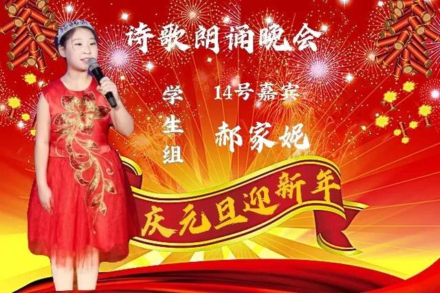 最后祝愿世界诗歌朗诵团队越办越好,蒸蒸日上,祝各位老师和孩子们元旦快乐,虎年吉祥,身体健康、万事如意!预祝“庆元旦,迎新年”线上诗歌朗诵晚会圆满成功,谢谢大家!