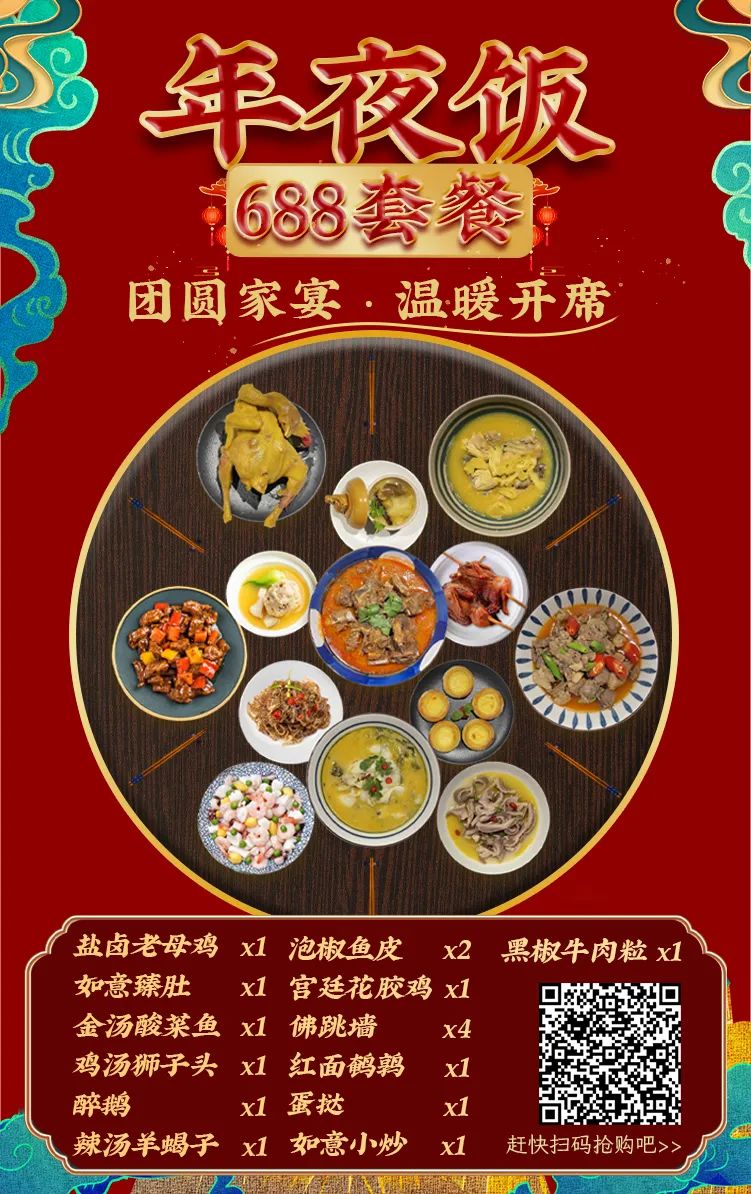 ¥688年夜饭套餐,含12道菜品,1道甜点: