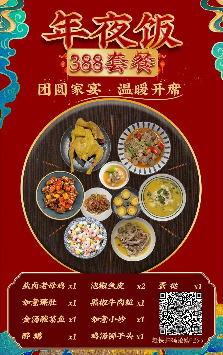 ¥388年夜饭套餐,含8道菜品,1道甜点: