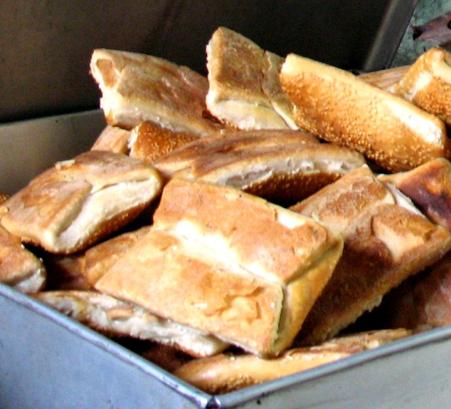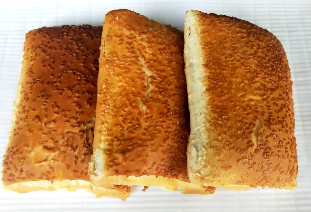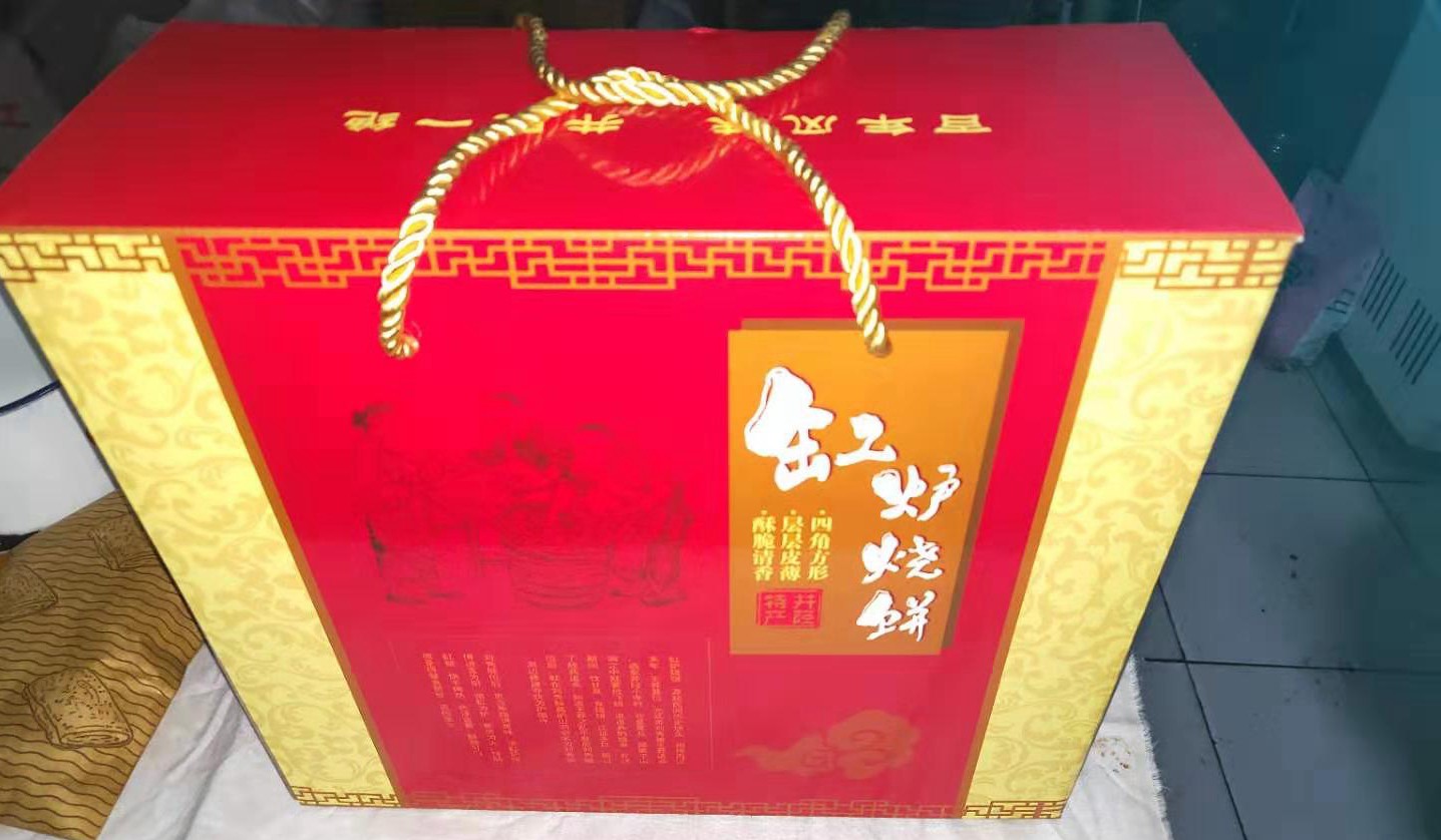做烧饼用的面粉要选上好的小麦面粉,先用适量食油把面拌成馓子状,加入食盐和温水和成硬面,在面案上做成面团儿,擀成圆饼,折成方形,再擀开再折起,反复三至五次,最后折成长方形的烧饼坯。擀得次数越多,烧饼内的层数越多,食用时就越香脆可口。将擀好的烧饼坯光面向上排列整齐,抹上清水,撒上脱去皮的白芝麻,翻转微拍使芝麻粒牢固地粘在表面上。待“缸炉”的炉壁烧热到适合的温度时,即可将未撒芝麻一面的烧饼贴到炉壁上烤熟食用。如在和面时根据需要适当减少水的比例,增加食用油的比例,即成为“油酥烧饼”,食用的口感更加鲜香酥脆。出炉后的烧饼呈方形,鼓胀焦黄,层层皮薄,酥脆清香,独具风味!