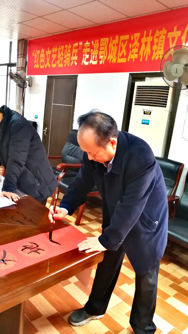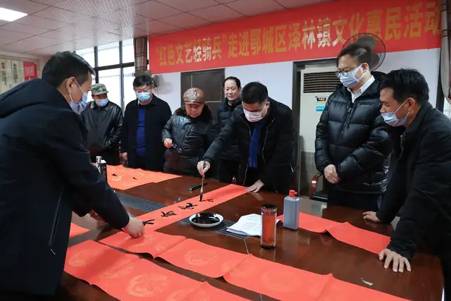 1月24日,农历腊月二十二。为进一步巩固脱贫攻坚成果,助力乡村振兴战略,满足人民群众对传统民俗文化的需求,在严格遵守防疫规定的情况下,按照“精简、高效、节俭”的原则,由鄂州市鄂城区文化和旅游局主办,鄂城区泽林镇和鄂州市俊杰农业专业合作社联合承办的荆楚“红色文艺轻骑兵”省直书法家小分队走进鄂州市鄂城区泽林镇文化惠民活动如期举行。
