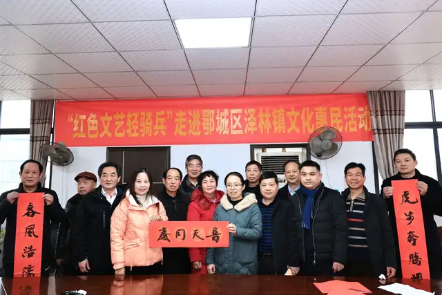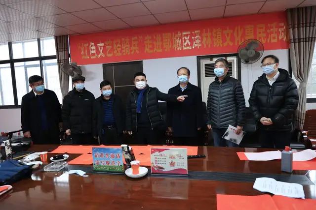 鄂州市鄂城区副区长戴剑;区文化和旅游局党组书记、局长金明敏;泽林镇党委副书记、镇长黄波;泽林镇党委委员、副镇长杨薇,带队参加了活动。共同为鄂城区泽林镇的父老乡亲送去了一份文化年货以及新春问候。