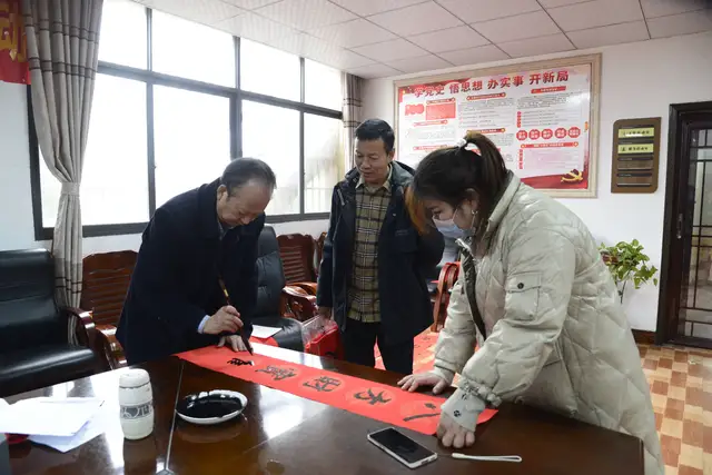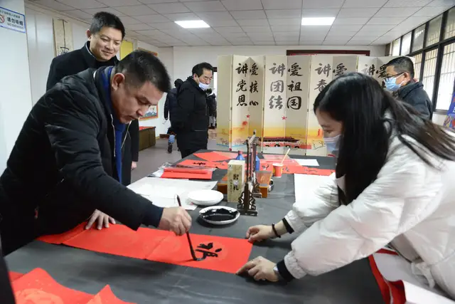 火红的春联为严寒的冬日带来了阵阵暖意,让活动现场群众感受到浓浓的年味,把节日的气氛烘托得更热烈,把新春的祝福送到群众心坎里。