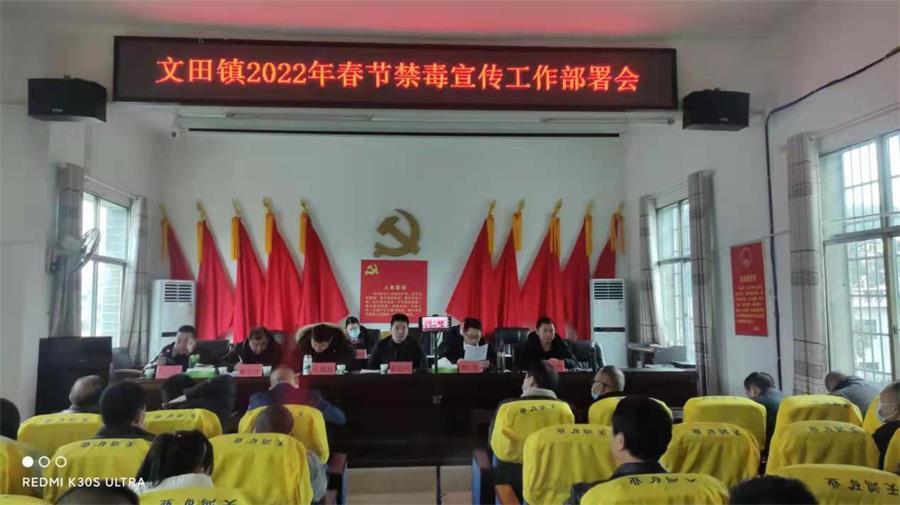 近日,湖南省新化县文田镇召开全体镇村干部春节重点工作安排部署会议,明确要抓住春节期间返乡人员较多这个重要时间节点,扎实开展好禁毒预防教育宣传。会议由镇长郭琪主持,党委书记邹益兵出席并讲话。