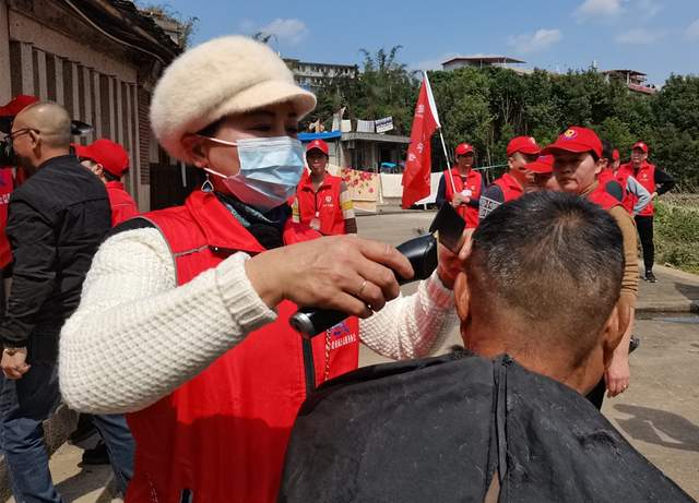 图:专业志愿者林玲玲在为老年人做爱心义剪