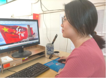 图一为3月15日,该校青年教师邹柳在“学习强国”学习平台进行红廉文化学习的场景。