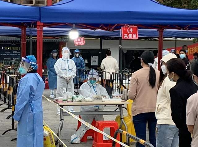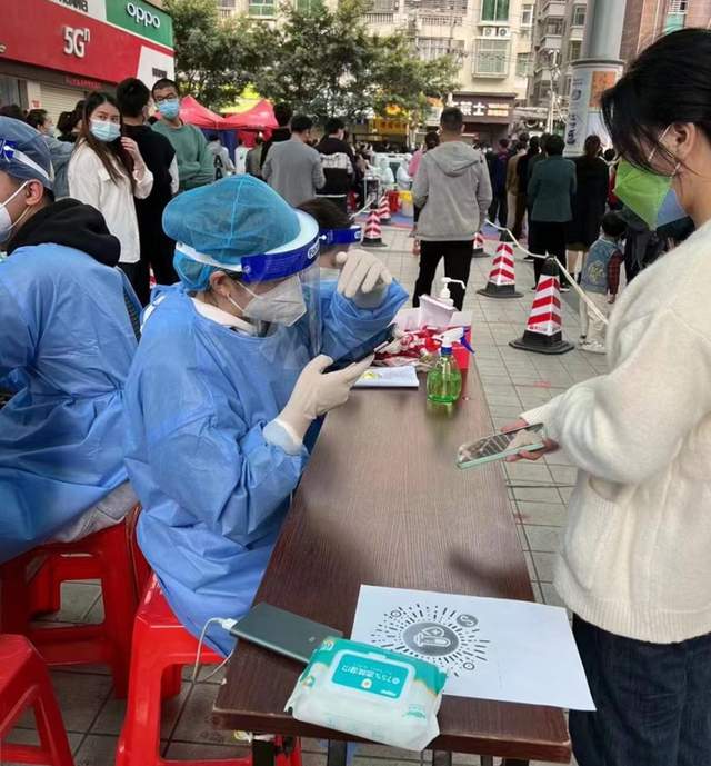 图:志愿者在核酸检测点服务