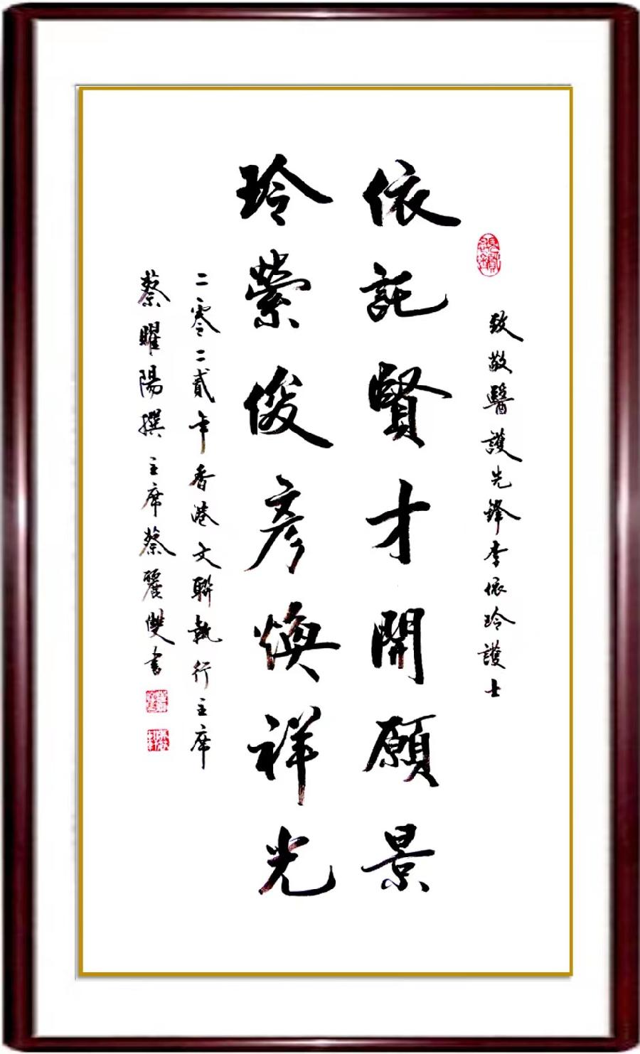 「依托贤才开愿景;玲萦俊彦焕祥光」。正是驰援香港的抗疫先锋李依玲护士,屡战屡胜的精神写照!香港市民为之鼓与呼!
