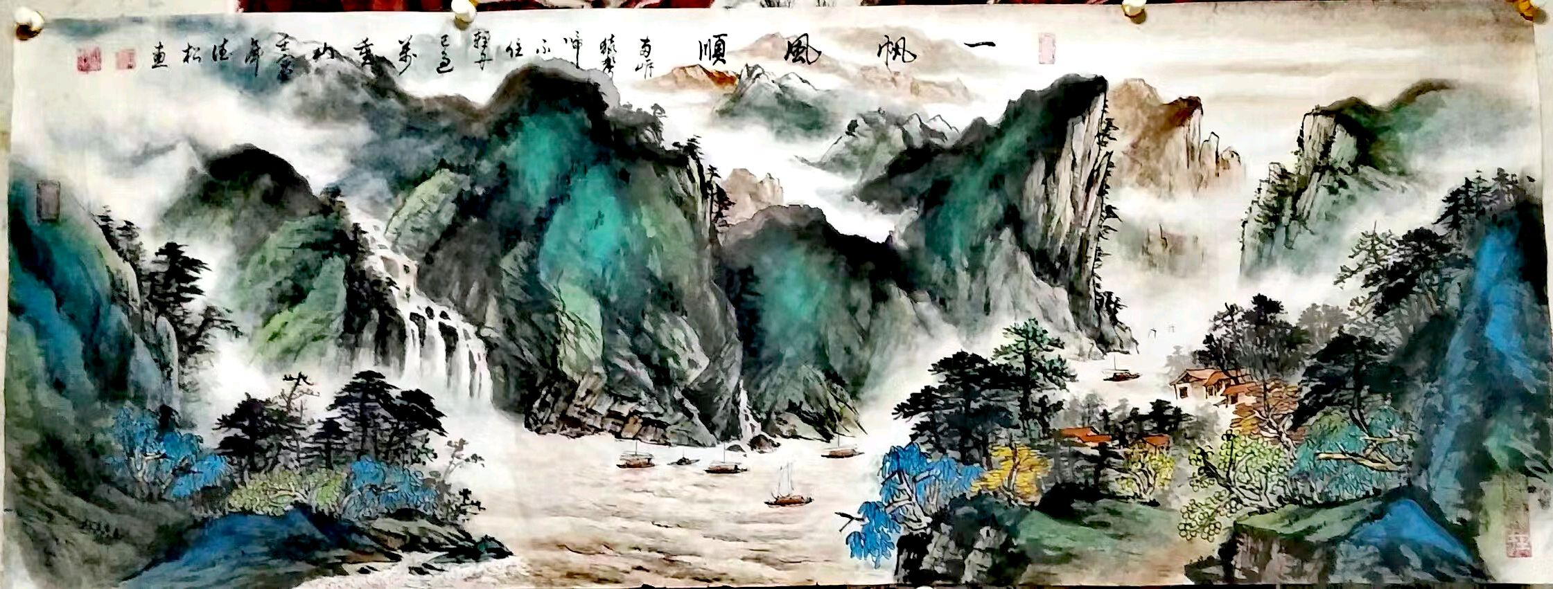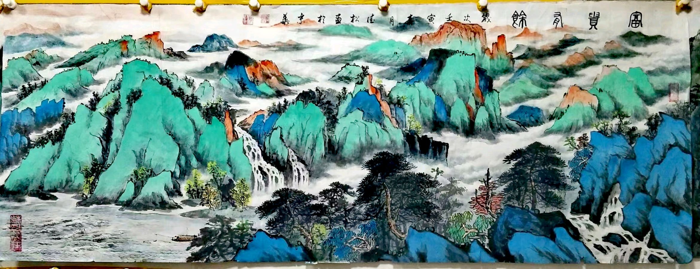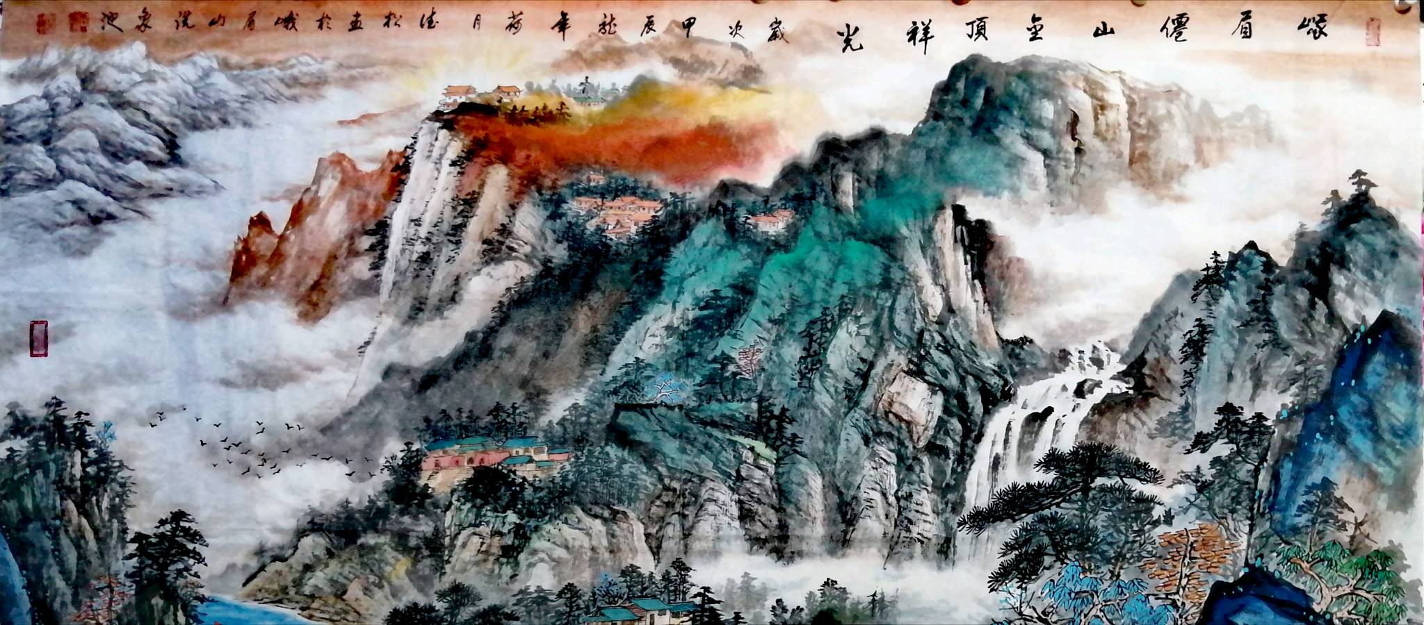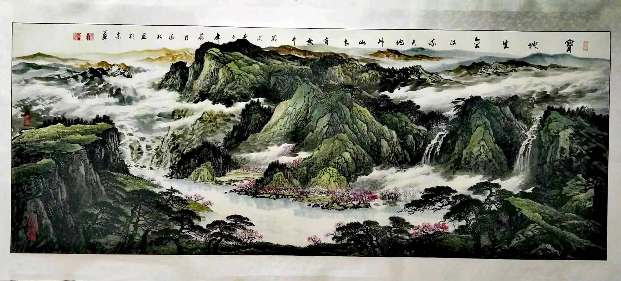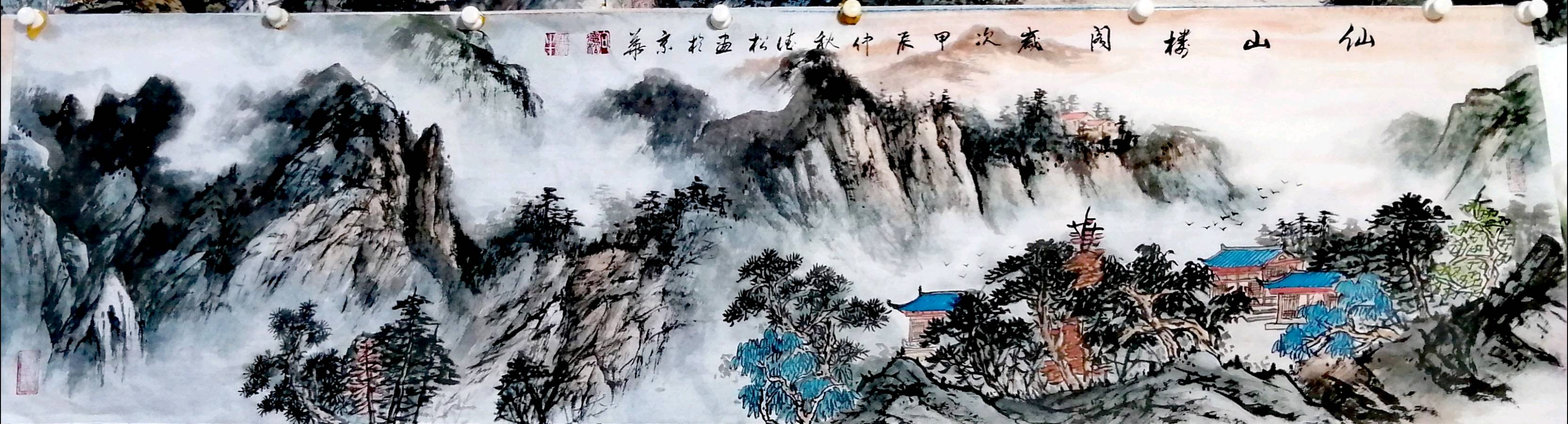 挥毫雨润仙山秀,吐韵云横碧水新。