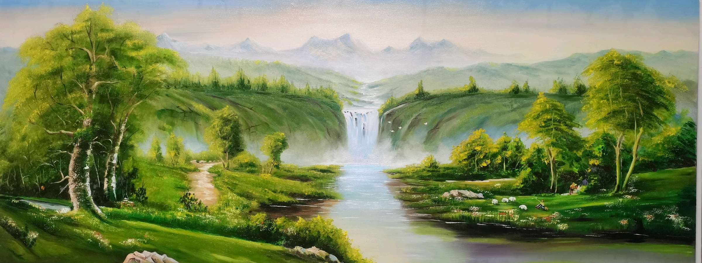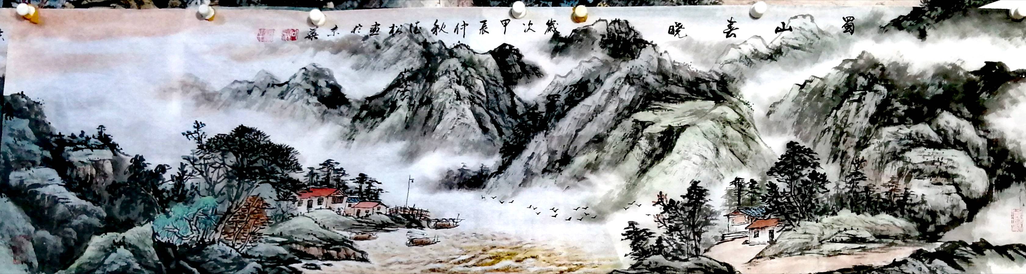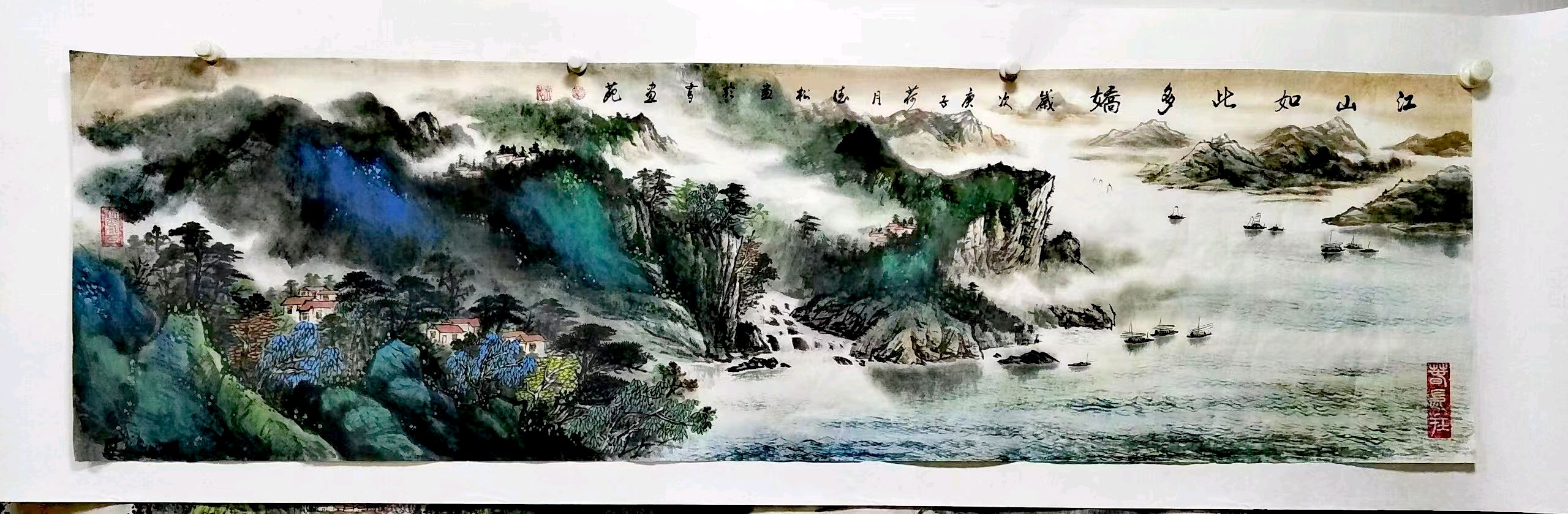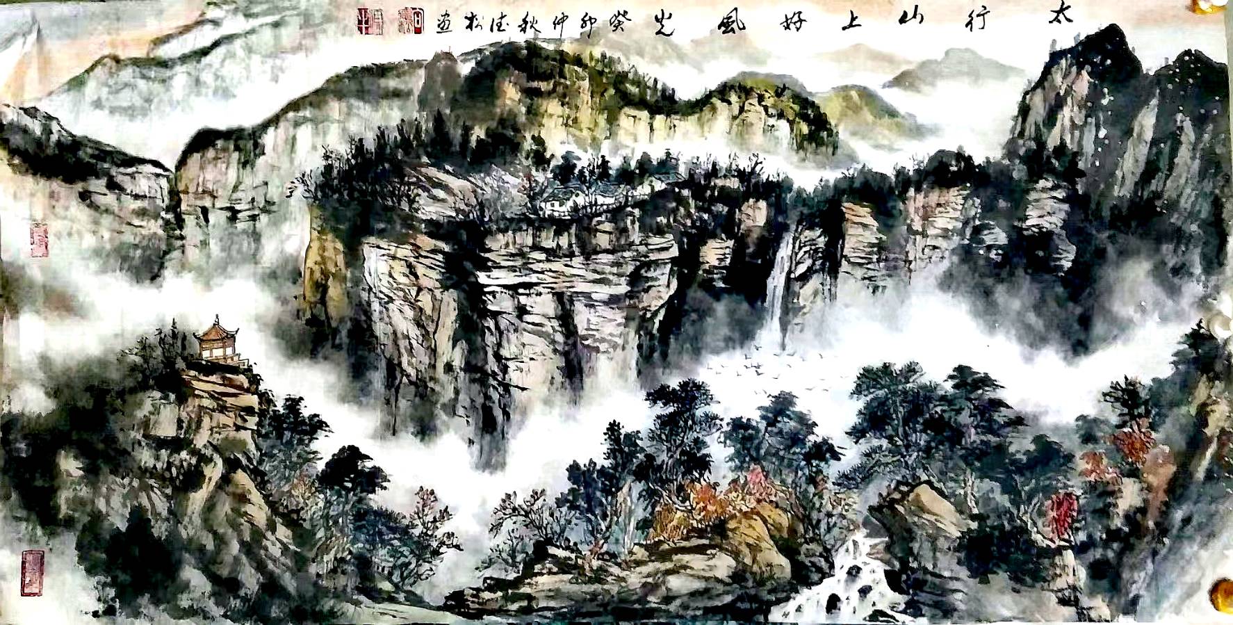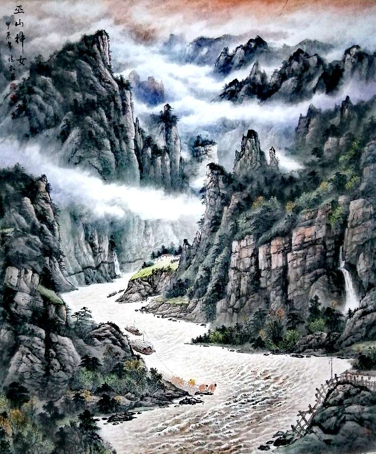 挥毫雨润仙山秀,吐韵云横碧水新。