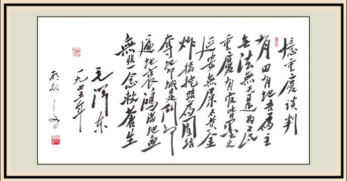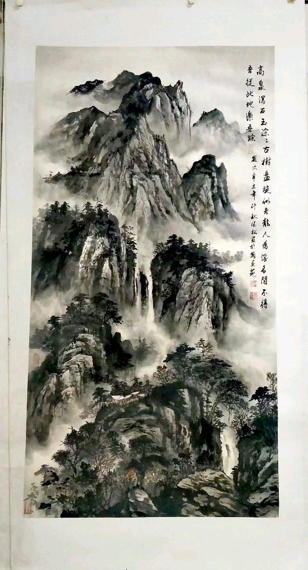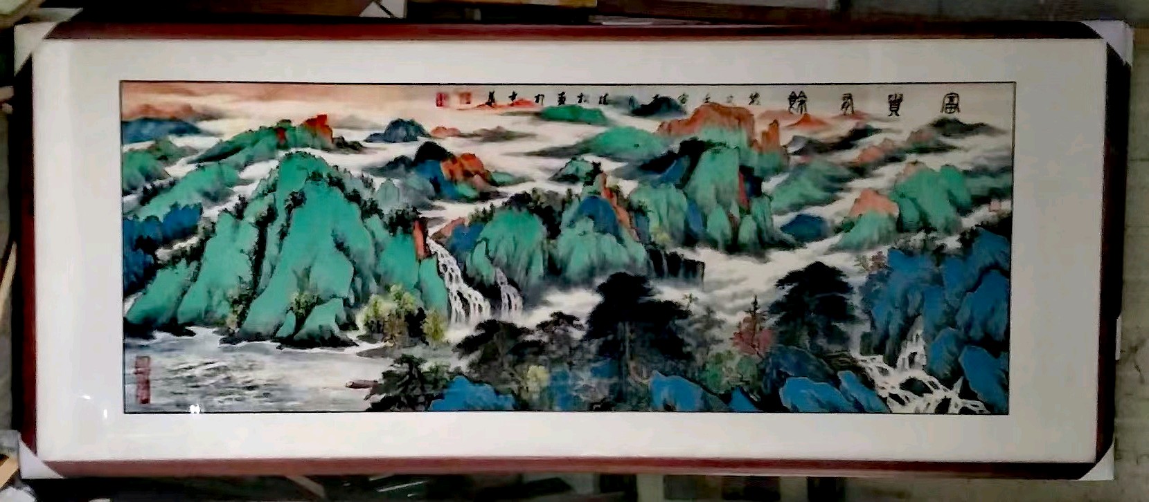 案上行书浓墨劲, 屏前山水绝诗狂。